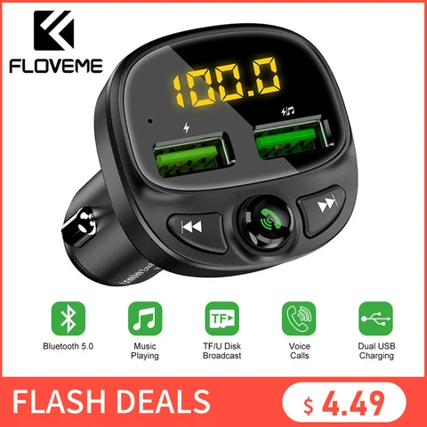 FLOVEME USB Car Charger For Phone Bluetooth Wireless FM Transmitter MP3 Player Dual USB Charger TF Card Music HandFree Car Kit