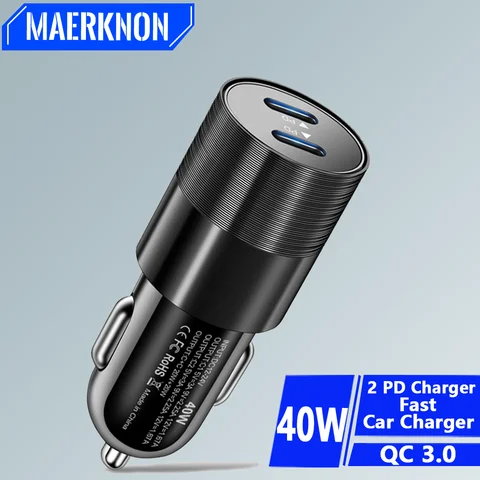 40W PD USB C Car Charger Fast Charging 2 Ports Car Phone Charger For Iphone 15 14 13 Xiaomi 12 13 Samsung Hauwei Type C Charger
