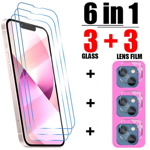 6IN1 Tempered glass for iPhone14 Plus 13 12 11 mini Xs max XR X 8 7 6 6S Plus SE screen protector for 14 13 12 11 Pro Max glass