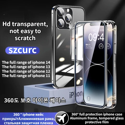 New 360° Full Protection Cover for IPhone 13 Pro MAX Phone Case.iPhone 14 11 12Mini Magnetic Adsorption Metal Glass Phone Sleeve