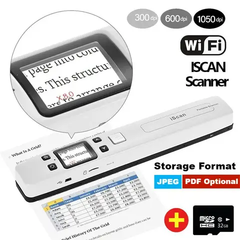 IScan A4 Mini Portable Office Scanner 8G 16G 32G With LCD Display 1050 DPI Scanning Document Photo Image Storage Format JPG/PDF