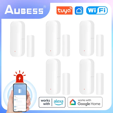AUBESS Tuya WiFi Smart Door Sensor Door Open Closed Detectors Smart Home Security Protection Alarm System Smart Life APP Control