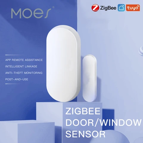 MOES Tuya ZigBee/Wifi Smart Window Door Gate Sensor Detector Smart Home Security Alarm System Smart Life Tuya App Remote Control