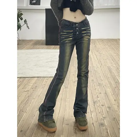 American vintage jeans female 2023 spring and autumn new high-waisted slimming design sense flared pants high street ins tide XL