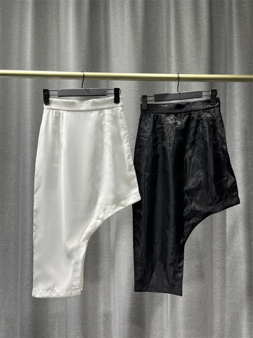 2022 Fashion Asymmetry Fake Shirt Hem Underskirts Elastic High Waist Black White Grey Plaid Split Half Slips Skirts Petticoat