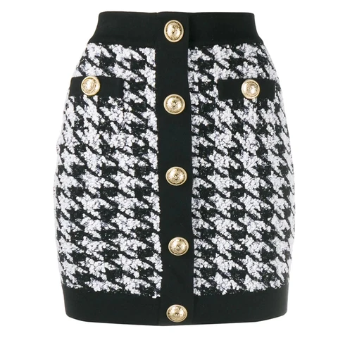 HIGH QUALITY Newest 2023 Designer Skirt Women's Lion Buttons Shimmer Tweed Houndstooth Mini Skirt