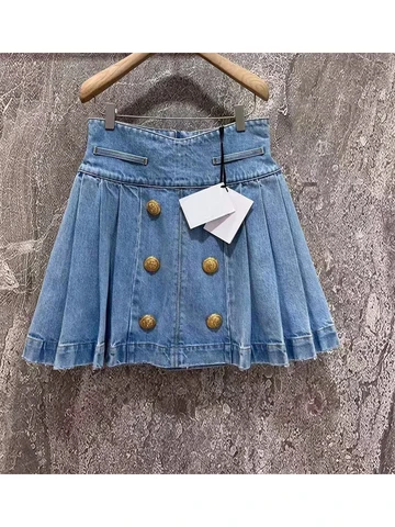 HIGH STREET Newest 2023 Spring Designer Skirt Women's Lion Buttons Pleated Denim Skirt