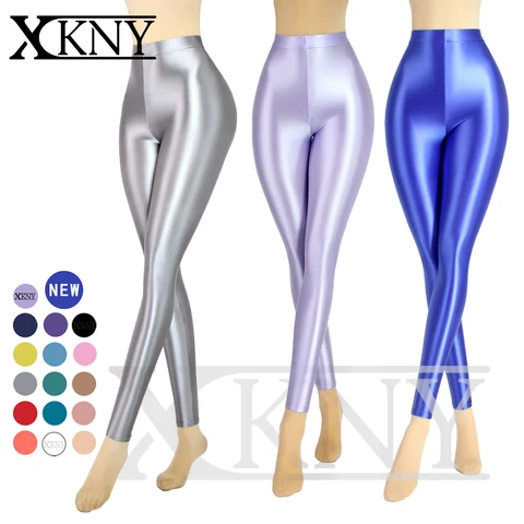 XCKNY new color Satin Glossy silky luster pantyhose sexy high waist tight Capris smooth high elastic Leggings swim glossy pants