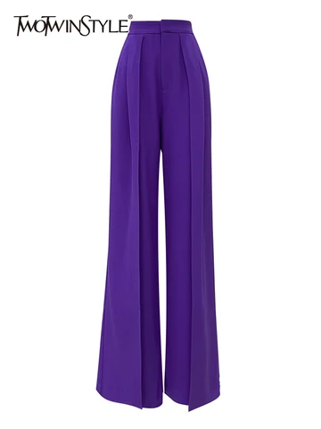 TWOTWINSTYLE Purple Loose Wide Leg Pants For Women High Waist Solid Minimalist Trousers Female Fashion Clothing Spring
