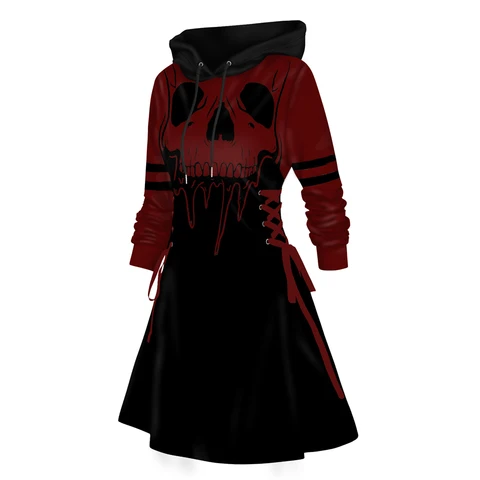 2023 Halloween New Goth Dress With Hooded Ghost and Pumpkin Print Hoodie Robe Lace Up Colorblock Woman clothing