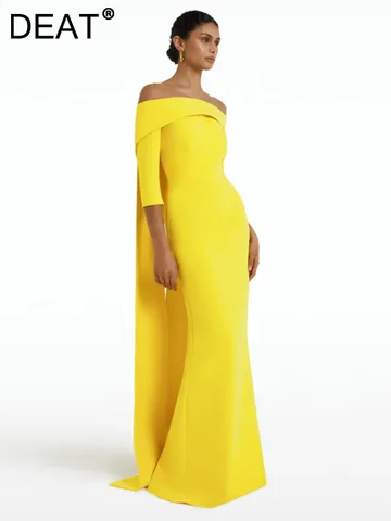 DEAT 2023 new Spring and winter slash collar spliced yellow color customized colored slim dress evening vestido WZ51007L