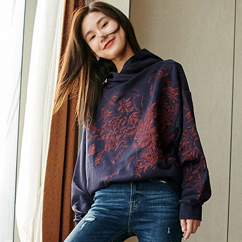 Jumpers Sweatshirt Women Hoodie Embroidery Loose Terry Long Sleeves lazy Style Casual Solid Spring and Autumn New Fashion