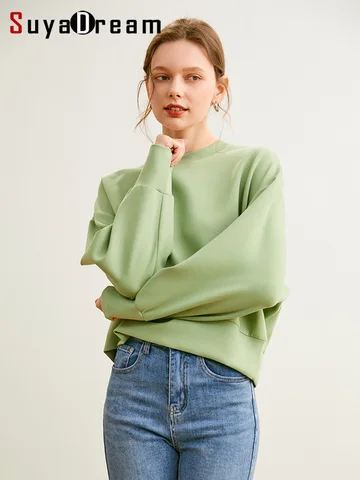 SuyaDream Woman Spring Hoodies Viscose Blend Drop-shoulder O-Neck Sweatshirts Basic Pullover