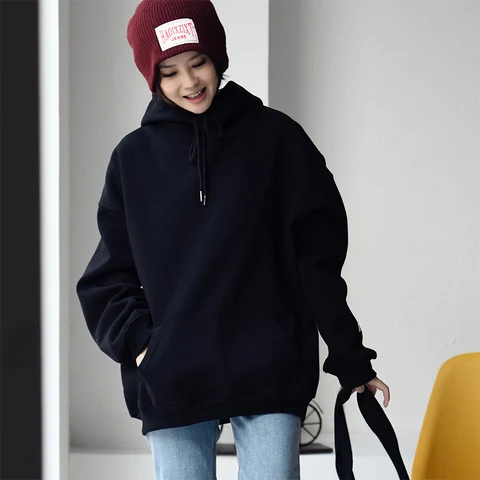 Jielur Sweatshirt Women Hoodies O-neck Long Sleeve Fleece Warm Autumn Winter Harajuku Thick Chic Loose Hoodie Female Korean