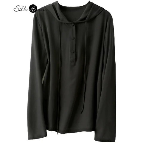 Silk Hooded Sweater Women's Long Sleeve 2022 New Solid Color Loose Casual Pullover Small Shirt Mulberry Silk T-shirt