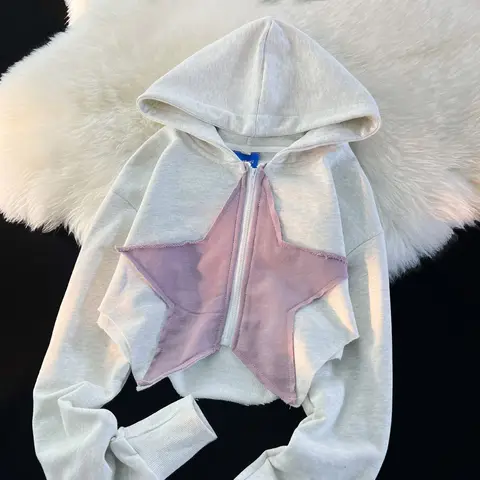 Small design Pentagon Star short long sleeve hooded women's sweater spring thin men's unique small top