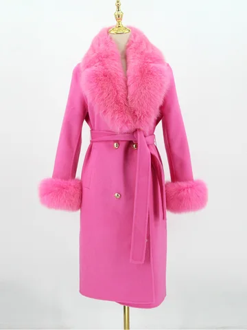 Pink Java QC22018 New Arrival Fashion Women Winter Wool Jacket With Cashmere Coat Real Fox Fur Collar And Cuff