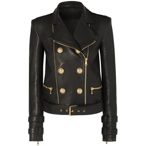 HIGH QUALITY 2023 Newest Designer Jacket Women's Lion Buttons Faux Leather Jacket Motorcycle Biker Jacket
