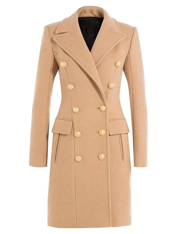 HIGH STREET Newest 2023 F/W Fashion Designer Overcoat Women's Classic Lion Buttons Double Breasted Slim Fitting Wool Coat