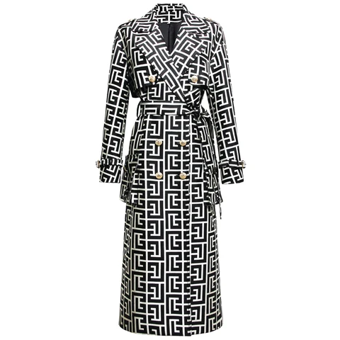 2022 Casual European And American Print Belted Double-sided Hepburn Coat Temperament Commuter High-end Mid-length Trench Coat