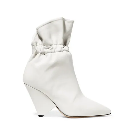 Designer Winter White Ankle Boots Women Sexy Spike Heels Pointed Toe Slip On Short Boots Runway High Heels Shoes Women Bota