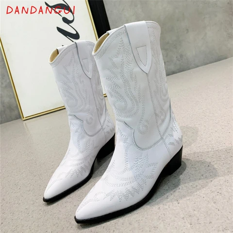High Quality Natural Leather Women's Ankle Boots Luxury Designer Platform Female Boots Autumn Winter New Embroidery Ladies Shoes