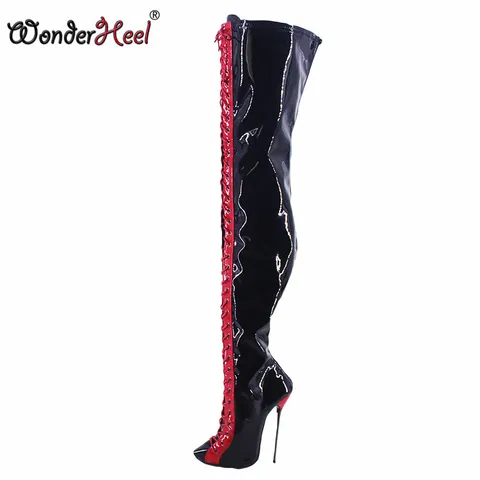 Wonderheel New 16cm Ultra Thin Metal heel Peep Toe Multi-color sexy Over Knee Boots Super Girls Nightclub Lace Up Crotch Boots
