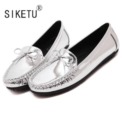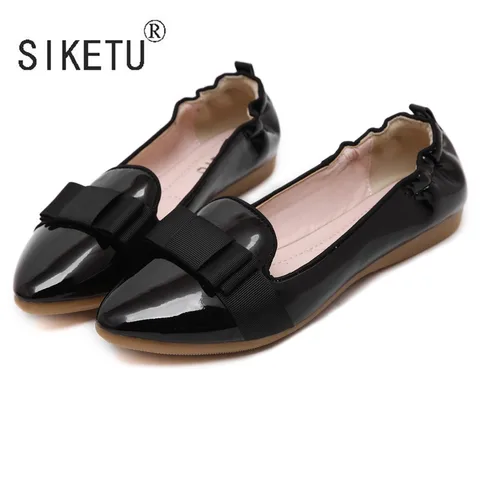 Newest Bowtie PU Women Flats Loafers Driving Peas Casual Shoes