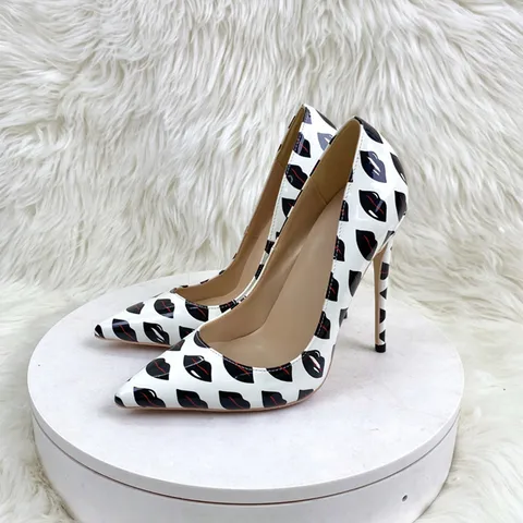 2023 Sexy single shoes color blocked lips women's high heels, thin heels pointy party dancing shoes