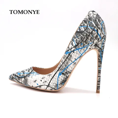 Factory wholesale grey handwriting python snake pointed toe women lady 120mm high heel autumn shoes plus size 12 sexy pump