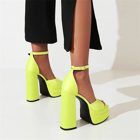 Women Thick High Heels Sandals Buckle Peep Toe Platform Waterprof Lady Fashion Elegant Shoes Solid Female Casual Party Pumps
