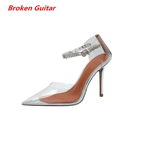 Summer new transparent rhinestone high-heeled ladies pointed stiletto PVC leather wrap sandals with buckle