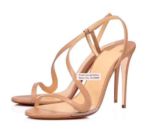 Women Designer Nude Matte S-Shaped Strap Sandals Transparent Clear PVC Patchwork Snake Summer Dress Shoes Stiletto Heels Size46
