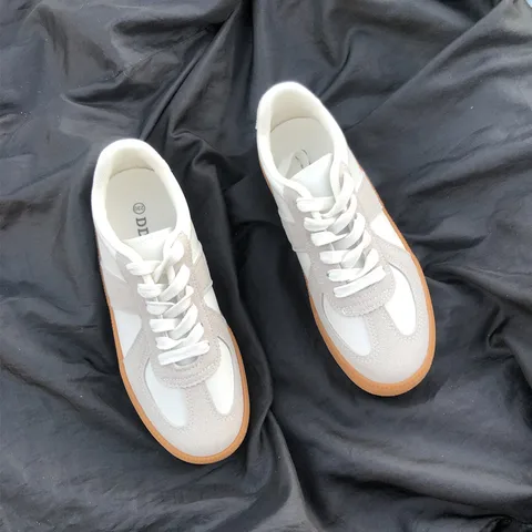 2022 Spring And Autumn New Classic Light Color Matching White Shoes Retro Lace-Up Leather Flat-Bottomed Casual Sneakers Women