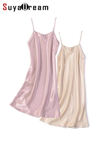 SuyaDream Silk Sleep Dress 100%REAL SILK Women Healthy Solid Spaghetti Strap Mini Dresses 2022 Summer Sleepdress White Pink
