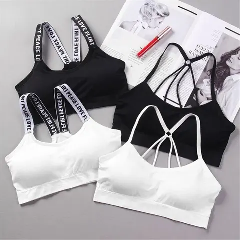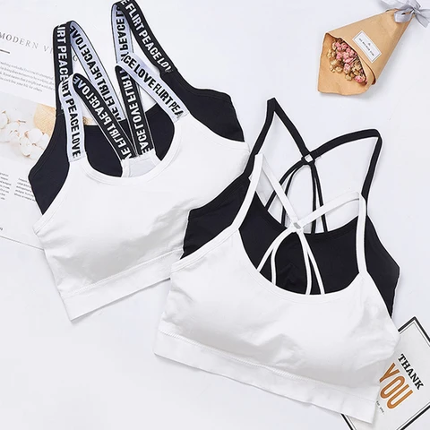 Sexy Bra Top Women Sports Bra Letters Straps High Impact for Gym Yoga Female Pad Sportswear Tank Top Sport Push Up Bralette