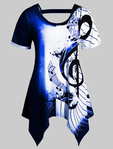New T -shirt Graphics 3D Musical Note Printing T-shirt Women O-neck Short Sleeved Clothing Shirt Sports Crop Top XS-8XL