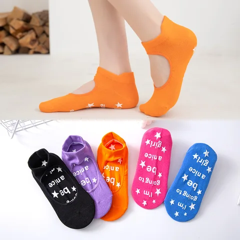 Women Yoga Socks Non Slip Grip Cotton Pilates Socks Ladies Ballet Dance Sports Socks Anti Slip Camping Fitness Ankle Gym Socks