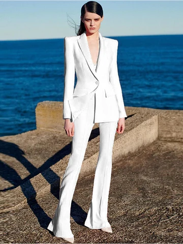 HIGH QUALITY Newest 2023 Runway Designer Suit Set Women's Career Fashion Single Button Blazer Flare Pants Suit