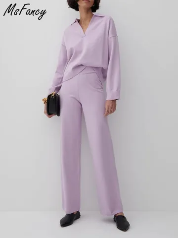 Msfancy Knitted Pant Sets Women Polo Pullover High Waist Trouser 2 Pieces Suit Mujer 2022 Autumn Casual Sweater Sets Outfits