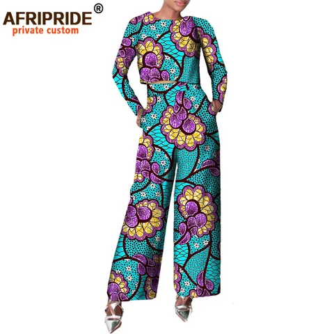 2020 Autumn African Women Suit AFRIPRIDE Private Custom Full Sleeve Short Top+wide Leg Ankle-length Pant 100% Wax Cotton A722639