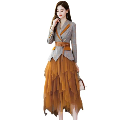 Spring and Autumn 2023 new two-piece suit waist slimming temperament early autumn dress female popular suit skirt