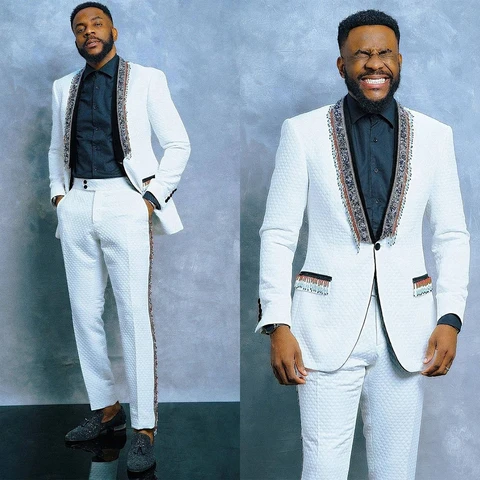 Fashion Men's Suits Tailored 2 Pieces Blazer Pants Sheer Lapel One Button Slim Fit Appliques Wedding Groom Custom Made Plus Size