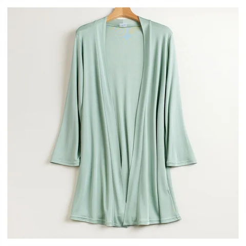 Silk Knitted Top Women's Medium Long Solid Color Seven Point Sleeve Cardigan Mulberry Silk Thin Office Air Conditioning Coat