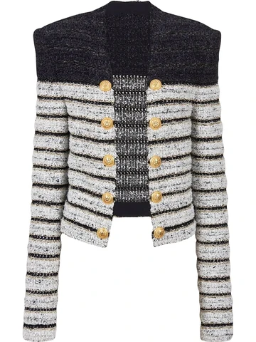 HIGH STREET New2023 Autumn Winter Designer Jacket Women's Classic Lion Buttons Color Block Striped Soft Warm Knit Cardigan Coat
