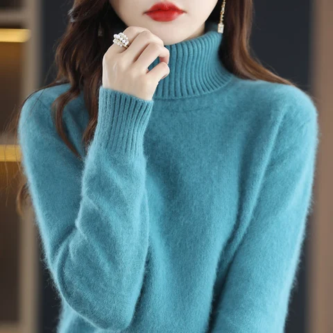 Autumn and Winter 2022 New Women's Sweater 100% Mink Cashmere High Neck Knitted Pullover Korean Fashion Soft Women's Top