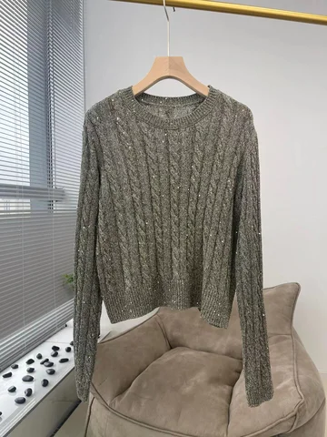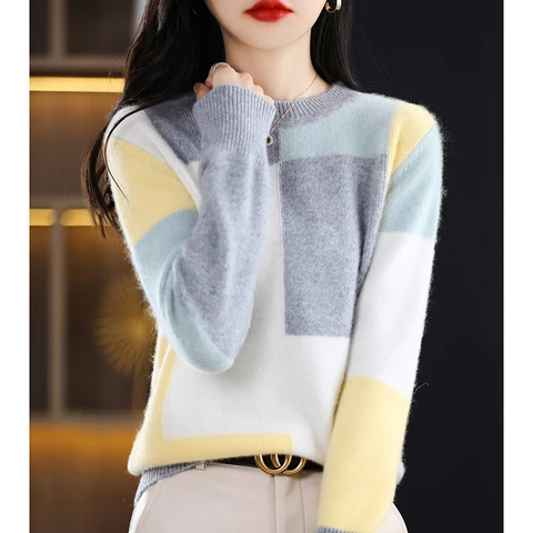 2022 Fall/Winter New Crewneck Cashmere Sweater Women's Slim Long Sleeved Pullover 100% wool knit fashion stitched sweater