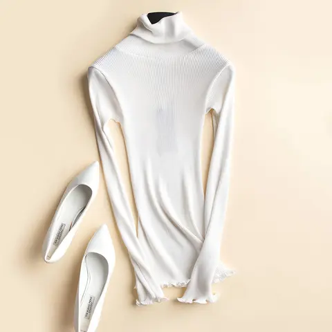 Women Silk Sweater 70% Silk 30% Cotton Stretchy Base Layer Turtle Neck Long Sleeve Pullover Sweater Top Shirt Solid Color 8235