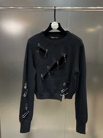 HIGH STREET Newest 2023 Fall Winter Designer Sweater Women's Round Neck Personalized Pin Design Knit Pullover Sweater