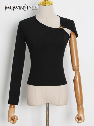 TWOTWINSTYLE Irregular Knitting Sweaters For Women Skew Collar Slimming Plain Casual Pullovers Female 2022 Fashion Clothing New